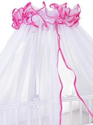 Широкий балдахин защитит кроху от назойливых насекомых и яркого света, а также выступит украшением комнаты. Изделие можно легко подобрать к постельному белью или интерьеру комнаты, благодаря окантовке, выполненной в двух цветах.